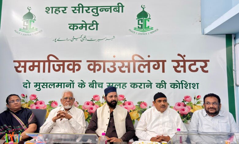 शहर सीरत-उन-नबी कमेटी द्वारा मुस्लिम समाज के बीच आपसी सुलह, मार्गदर्शन और सामाजिक शांति को सुदृढ़ करने के उद्देश्य से “सामाजिक काउंसलिंग सेंटर” की स्थापना कर इसकी औपचारिक शुरुआत की गई। इस सेंटर का उद्देश्य समाज को जोड़ना, बढ़ते विवादों को संवाद के माध्यम से सुलझाना और शांति एवं सद्भाव को बढ़ावा देना है, जहाँ सुलह, रहनुमाई और इंसाफ एक ही छत के नीचे उपलब्ध रहेंगे।